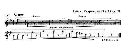 Фраза не ограничивается двухтактом и двухмотивным составом – один из важных признаков фразы это ей гибкость – например, двухтактовая фраза может состоят из 3х мотивов