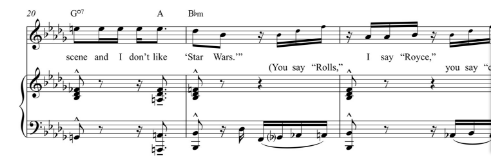 В данном случае не прозвучавший аккорд Bb это доминанта к Eb. Таким образом, здесь опять закрепляется тональная неопределенность, которая усложняется голосоведением – в басу используется нисходящее хроматическое движение, поэтому гармонию можно воспринимать, как: