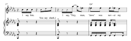 Далее мы видим сопоставление тональностей. Сразу после разрешения в E мажор, начинается куплет в Bbm.