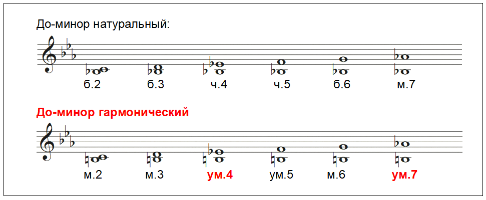 Там, где в натуральном виде лада был большой интервал, там в гармоническом ладу получился малый. В этом наш слух не находит ничего необычного. Но там, где были интервалы малые или чистые, – там получились интервалы уменьшенные! А вот их наш слух воспринимает как нечто экстраординарное, «характерное».