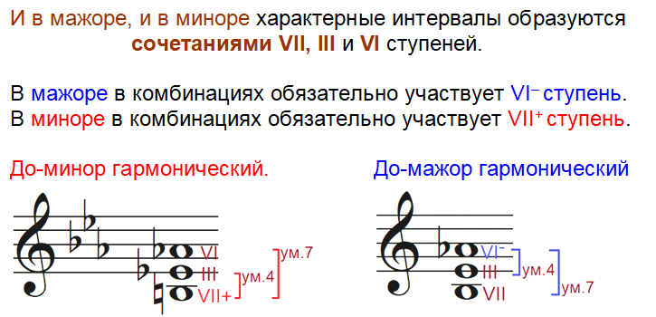 Однако напряженность их звучания имеет иную природу, чем, у акустических диссонансов — секунды или септимы. Секунда и септима всегда звучат резко. А эффект характерных интервалов чисто психологический, возможен только в контексте тональности.