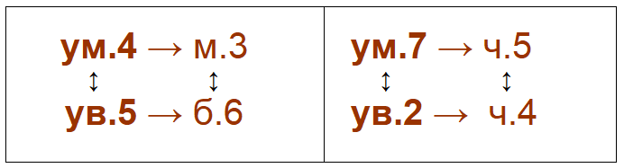 ум.4    обращается  в   ув.5     III   VI